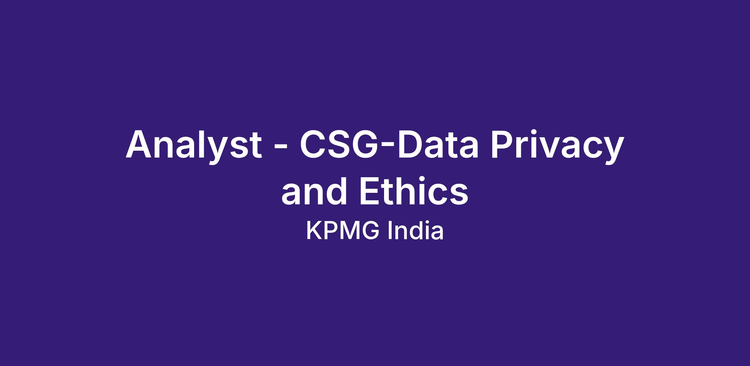 Analyst - CSG-Data Privacy and Ethics
