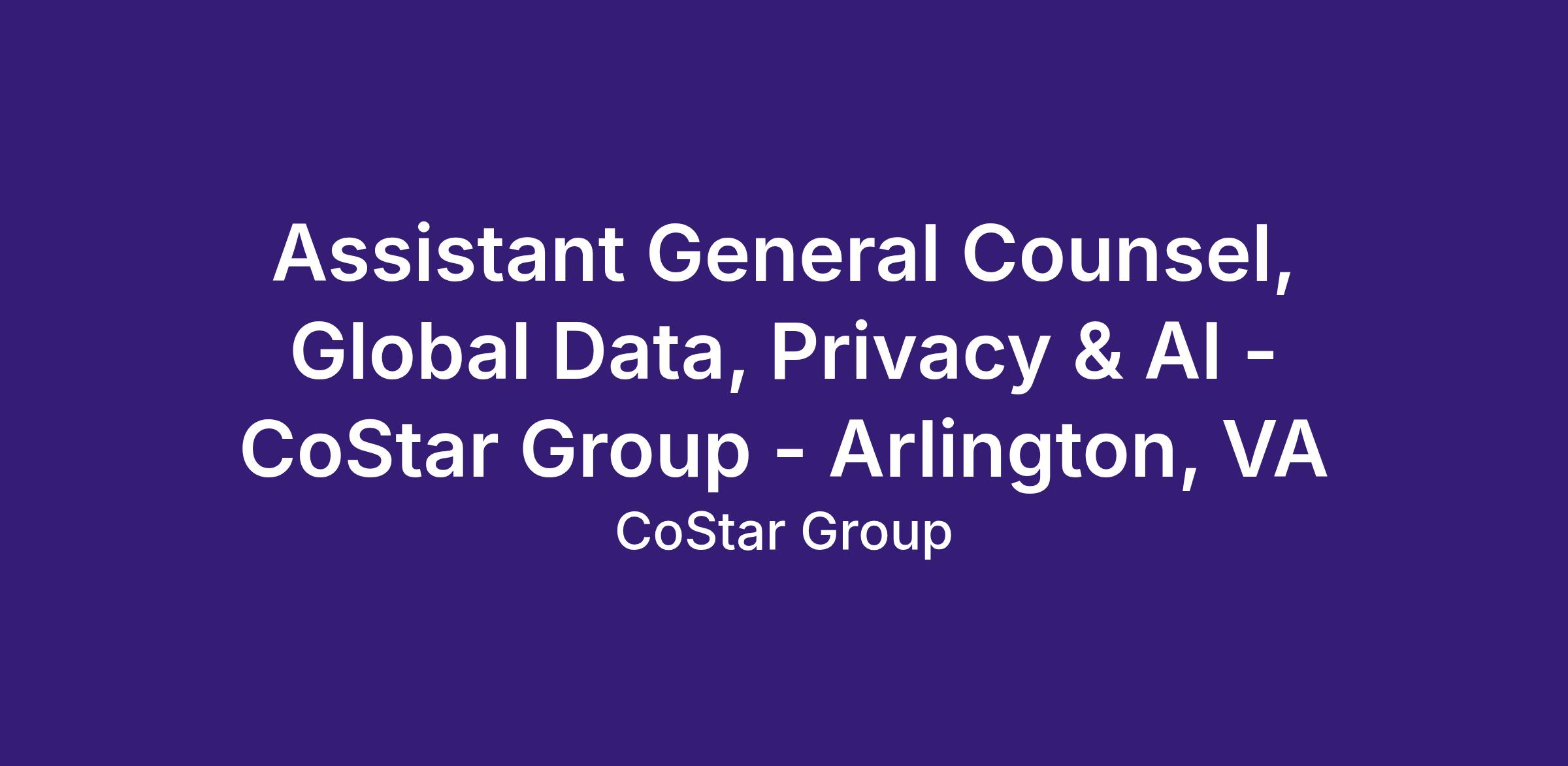 Assistant General Counsel, Global Data, Privacy & AI - CoStar Group - Arlington, VA
