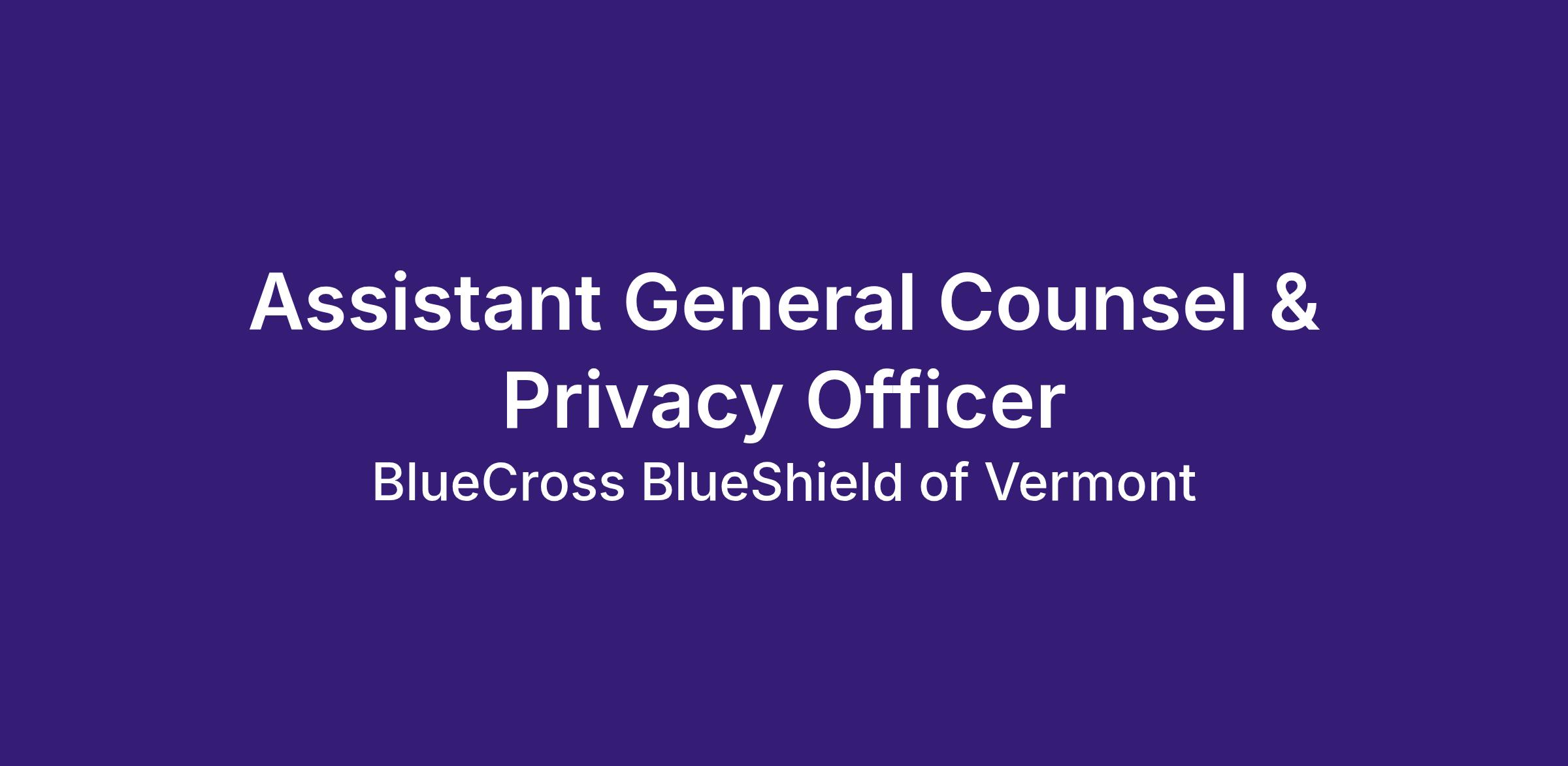 Blue Cross and Blue Shield of Vermont (Blue Cross VT) is looking for an Assistant General Counsel & Privacy Officer to join our legal department. You will be responsible for protecting member privacy and enforcing industry standards of data integrity while helping Blue Cross VT navigate the complexities of a shifting digital landscape that includes artificial intelligence. Blue Cross VT’s legal department consists of the General Counsel and 4 other attorney positions. The size of the legal department fosters considerable collaboration on general legal matters while also allowing each attorney to become a subject matter expert in multiple areas. There is always room for growth at Blue Cross VT.