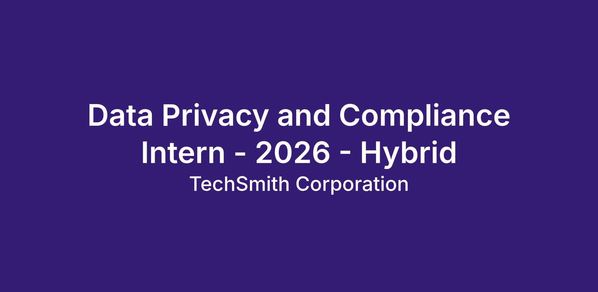 TechSmith, a global visual communication software company is seeking a detail-oriented and motivated Data Privacy and Compliance Intern to support our growing privacy, security compliance, and trust initiatives. This part-time role is ideal for a student interested in data privacy, information security, compliance, and risk management within a technology environment.