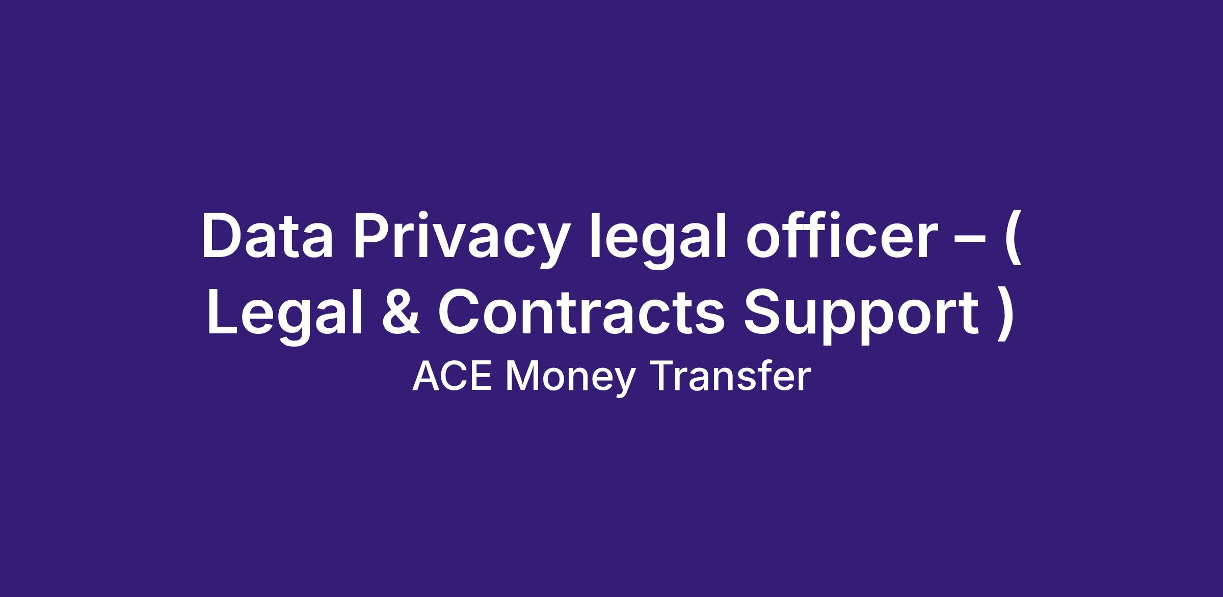 About UsACE Money Transfer is a UK-based multinational company headquartered in Manchester, United Kingdom. ACE Money Transfer provides secure online remittance services to individuals across the UK, Europe, Canada, and Australia, enabling customers to send money to over 100 countries worldwide. As a global leader in cross-border remittances, ACE is committed to regulatory compliance, data protection excellence, and maintaining customer trust across all jurisdictions in which it operates.Role SummaryReporting to the Legal Department, the Data Privacy legal officer will lead ACE’s privacy compliance initiatives while supporting commercial contracting activities. This role works closely with the Data Protection Expert to maintain and strengthen ACE’s global privacy governance framework, ensuring alignment with GDPR, UK Data Protection Act 2018, and other applicable international data protection laws. The Data Protection Legal Officer will ensure that privacy obligations are embedded in all business operations and contracts.Key Responsibilities1. Data Protection & Privacy Governance- Lead compliance with data protection legislation across ACE Group entities, including GDPR, UK Data Protection Act 2018, and equivalent international frameworks.