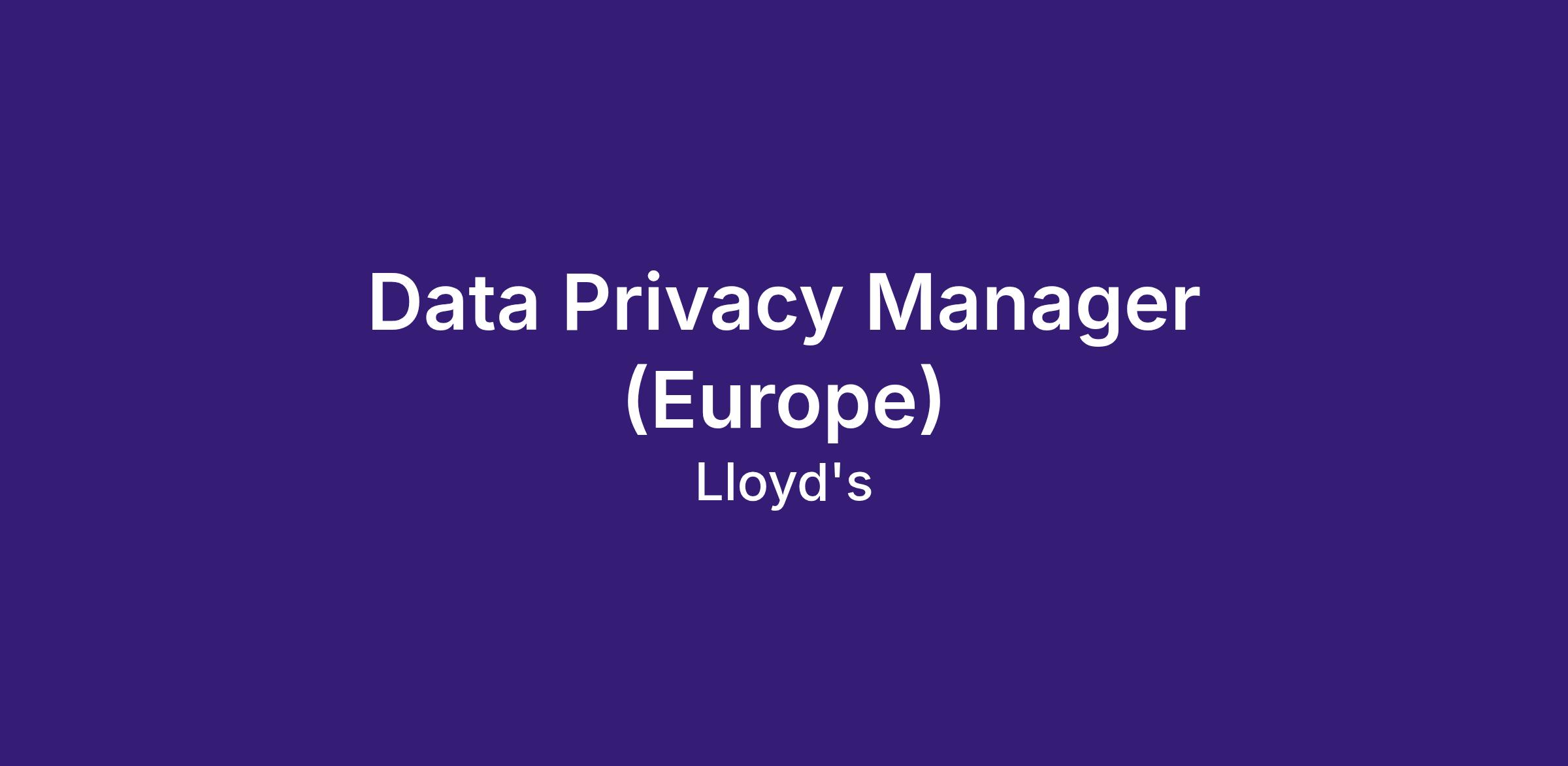Lloyd’s Europe (also known as Lloyd’s Insurance Company) is seeking to recruit a Data Privacy Manager(Europe) based within the EU ideally within one of our regional office Belgium, Netherlands, Ireland or Sweden.