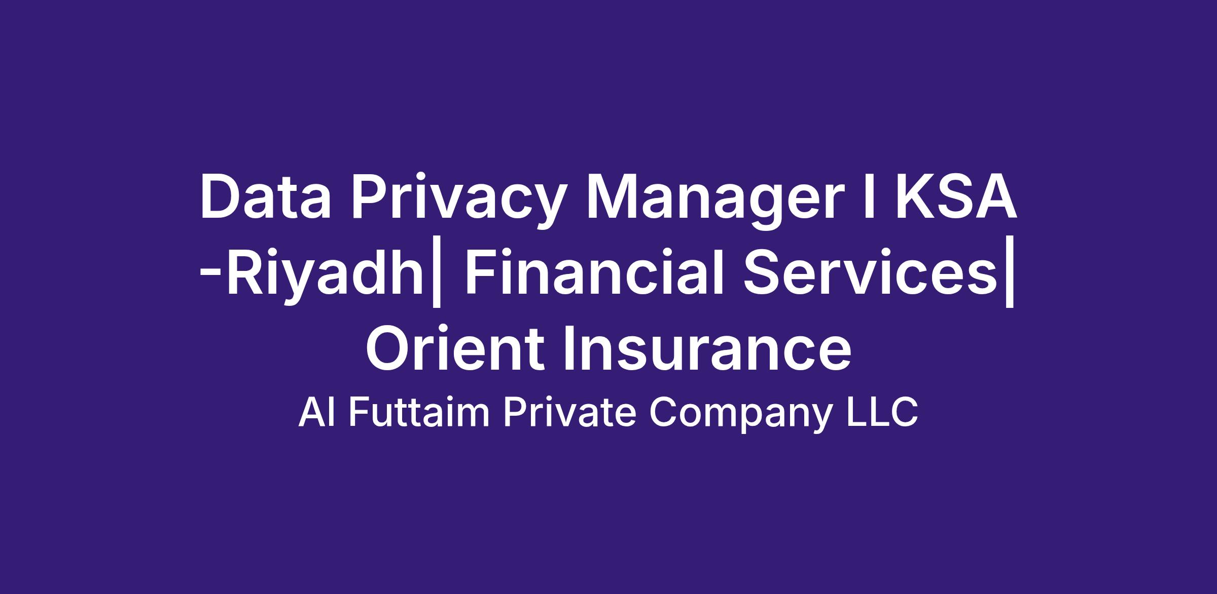 Data Privacy Manager I KSA -Riyadh| Financial Services| Orient Insurance