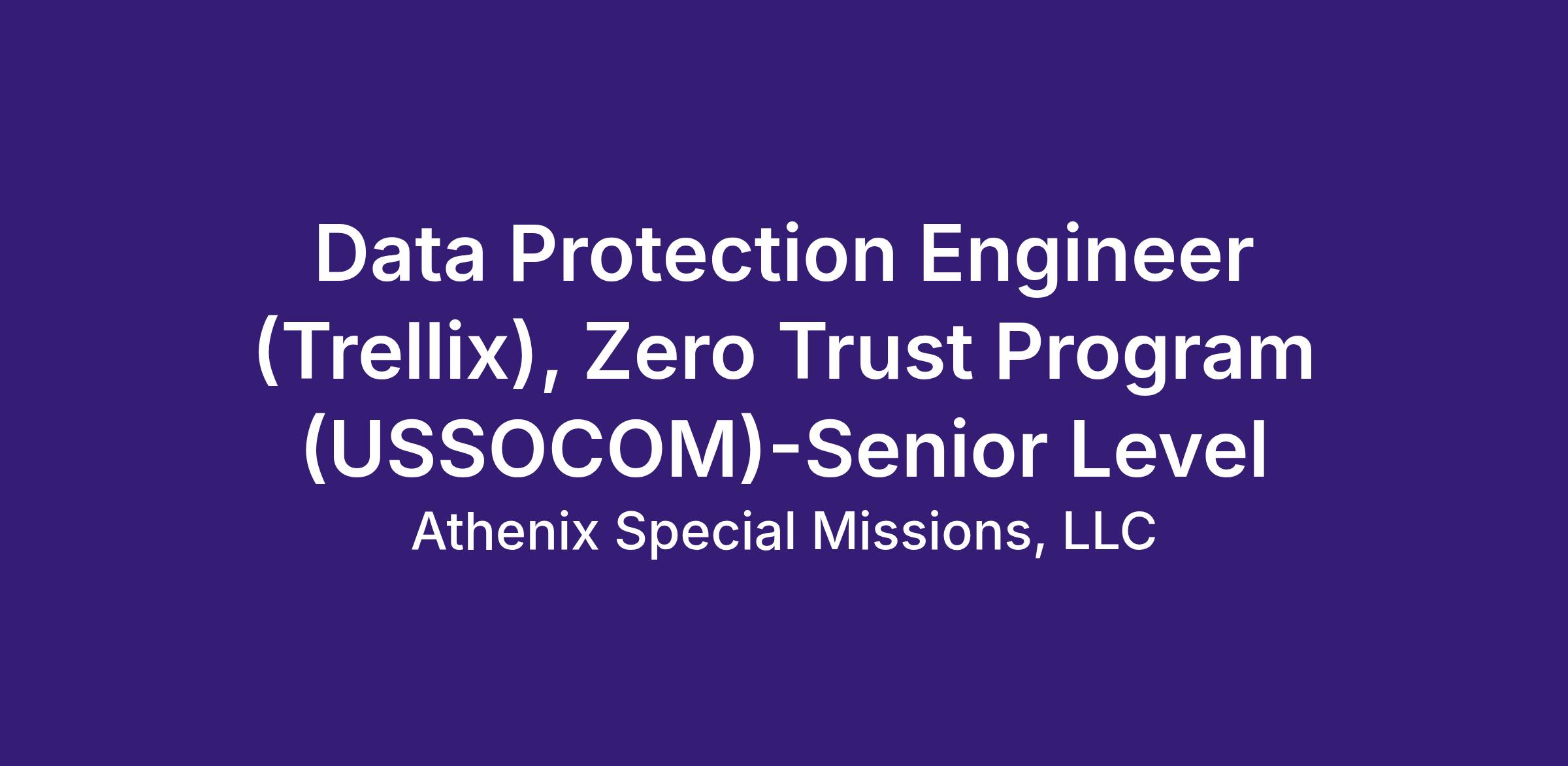 Athenix Special Missions is seeking a Data Protection Engineer (Trellix), Zero Trust Program (USSOCOM) - Senior Level in MacDill Air Force Base (Tampa), Florida!