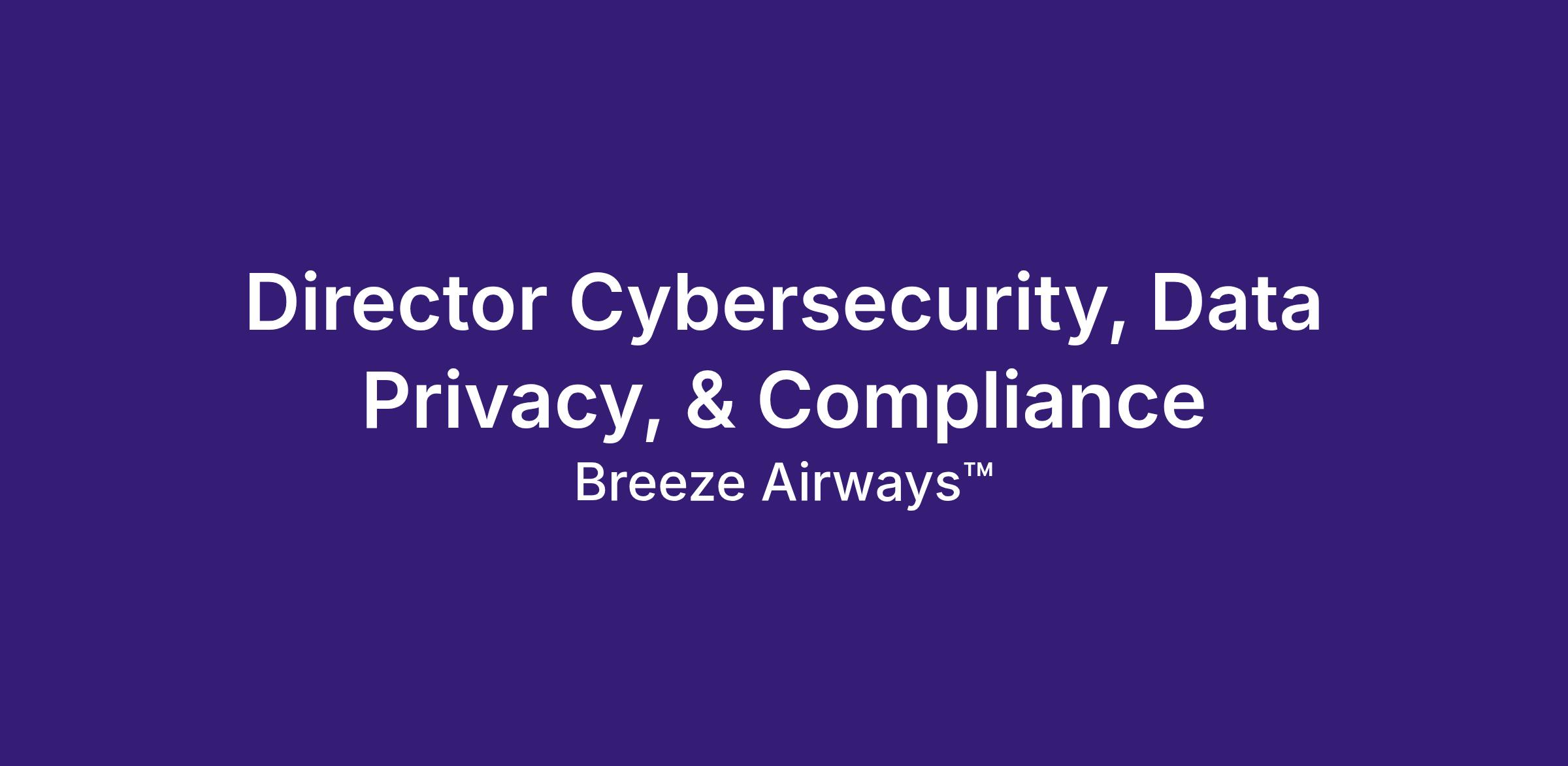 The Director Cybersecurity, Data Privacy, & Compliance leads the enterprise cybersecurity, data privacy, and data governance programs while ensuring regulatory compliance across all operational and commercial functions of Breeze Airways. This role defines and executes the organization's information security strategy, establishes and matures the enterprise data privacy and governance framework, ensures compliance with applicable federal, state, and international privacy regulations (including CCPA/CPRA, state privacy laws, and GDPR where applicable), and oversees aviation-specific regulatory compliance obligations related to data and technology (including DOT, TSA, and FAA requirements). The Director also provides strategic oversight for responsible AI/ML governance as the organization adopts emerging technologies. This responsibility extends into all business units within the organization including airport systems, maintenance and engineering, inflight, aircraft, safety, commercial, back office, infrastructure, and cloud.
