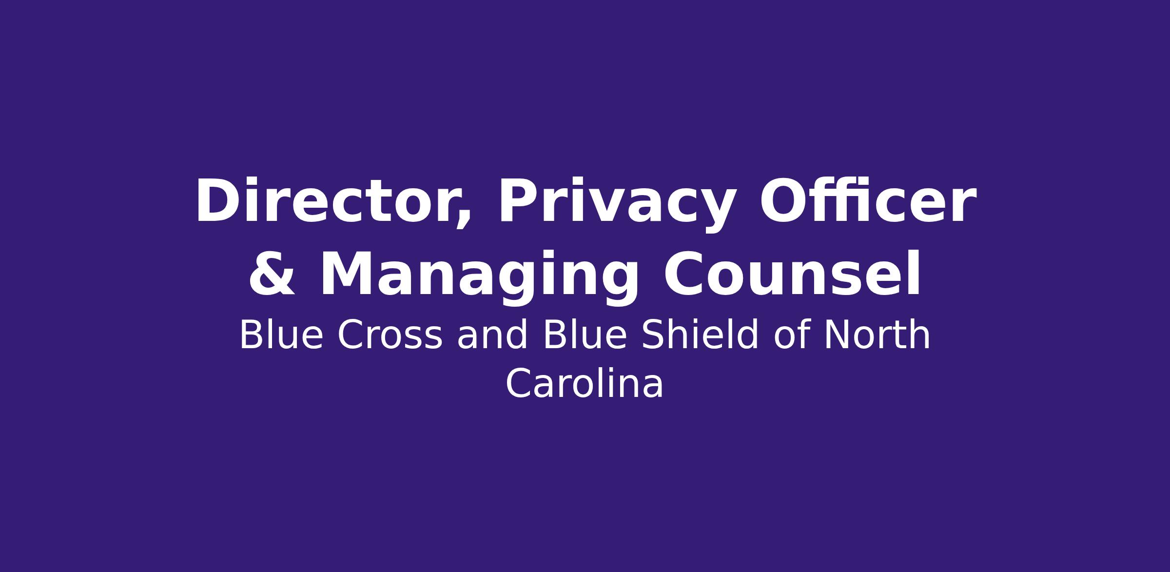 The Director of Managing Counsel will oversee the delivery of legal services and advice for the Company, acting as the main attorney for Blue Cross NC’s Privacy Program. This role manages both attorneys and non-attorneys and oversees Blue Cross NC’s Privacy Program related to safeguarding employee, customer and corporate information pursuant to legal, regulatory and contractual requirements and standards that govern Privacy, and reports directly to the Vice President of the Legal Department & Deputy General Counsel. The Managing Counsel brings expertise in several areas of law essential to both the Company and its subsidiaries, works closely with Company Officers and senior executives, and leads the team within the Legal Department.
