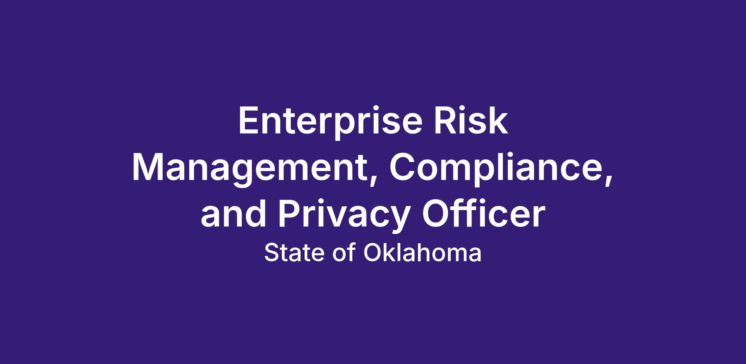 The Enterprise Risk Management, Compliance, and Privacy Officer is responsible for developing, implementing, and overseeing an integrated framework for enterprise risk management, compliance, and records management. This position works directly with the Director of Enterprise Risk Management and Compliance, with responsibility including enterprise risk management, compliance, and records management, as well as serving as the OSDH Privacy Officer. The Enterprise Risk Management and Compliance Officer is a senior level position at the Oklahoma State Department of Health (OSDH).