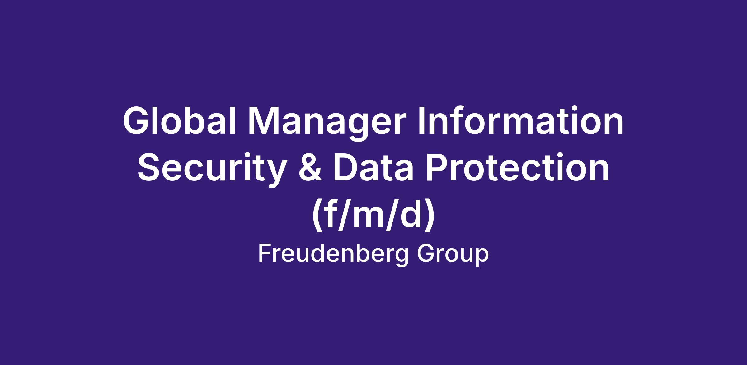Freudenberg Filtration Technologies is seeking a Global Manager Information Security & Data Protection to take end‑to‑end ownership of our global Information Security Management System (ISMS) and Data Protection Management System (DPMS).