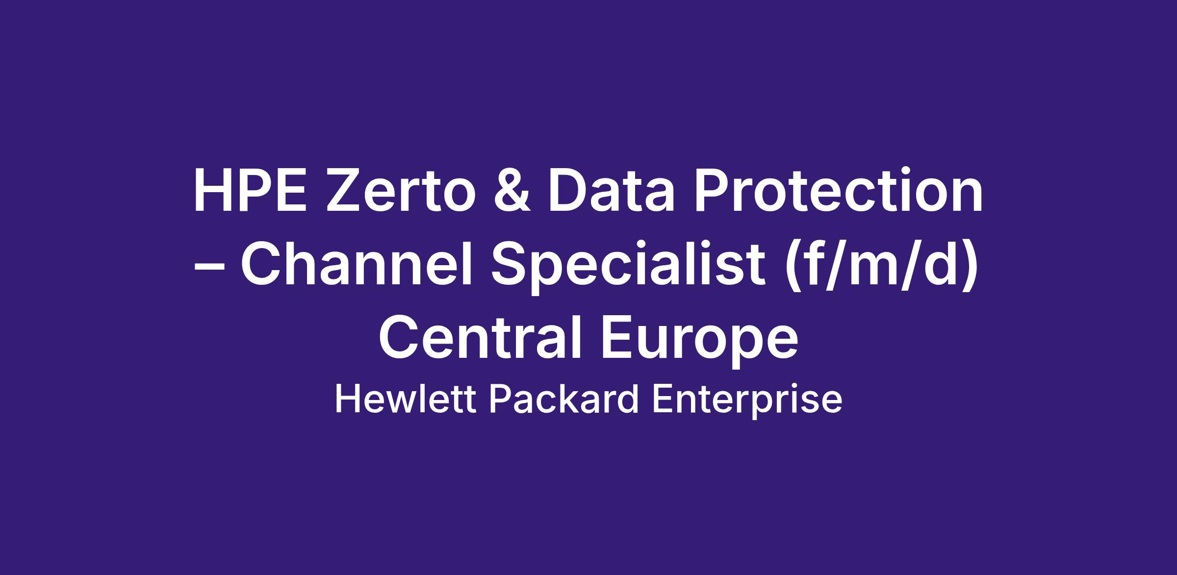 HPE Zerto & Data Protection – Channel Specialist (f/m/d) Central Europe
