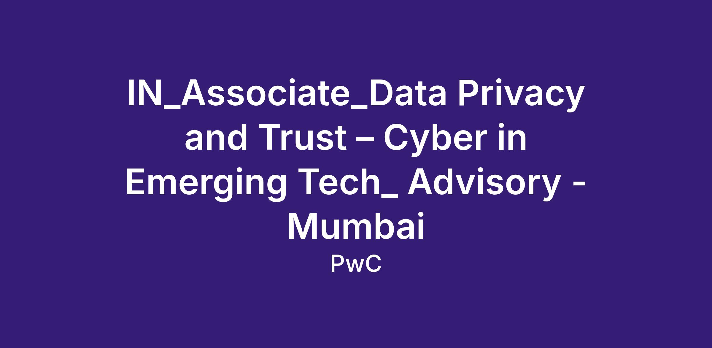 IN_Associate_Data Privacy and Trust – Cyber in Emerging Tech_ Advisory - Mumbai