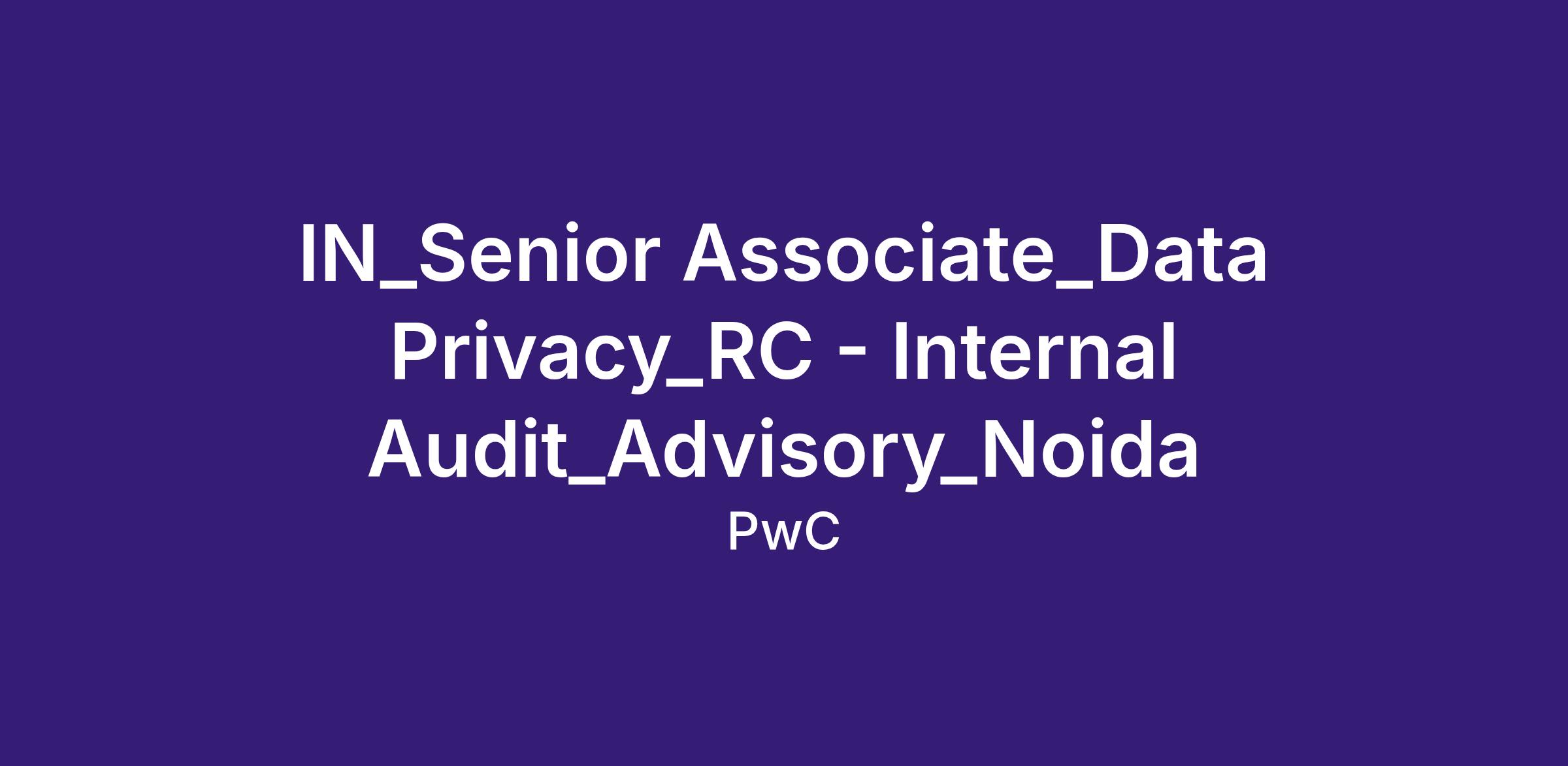IN_Senior Associate_Data Privacy_RC - Internal Audit_Advisory_Noida