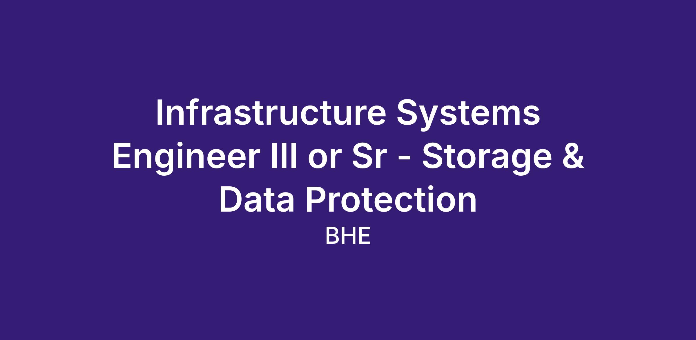 Infrastructure Systems Engineer III or Sr - Storage & Data Protection