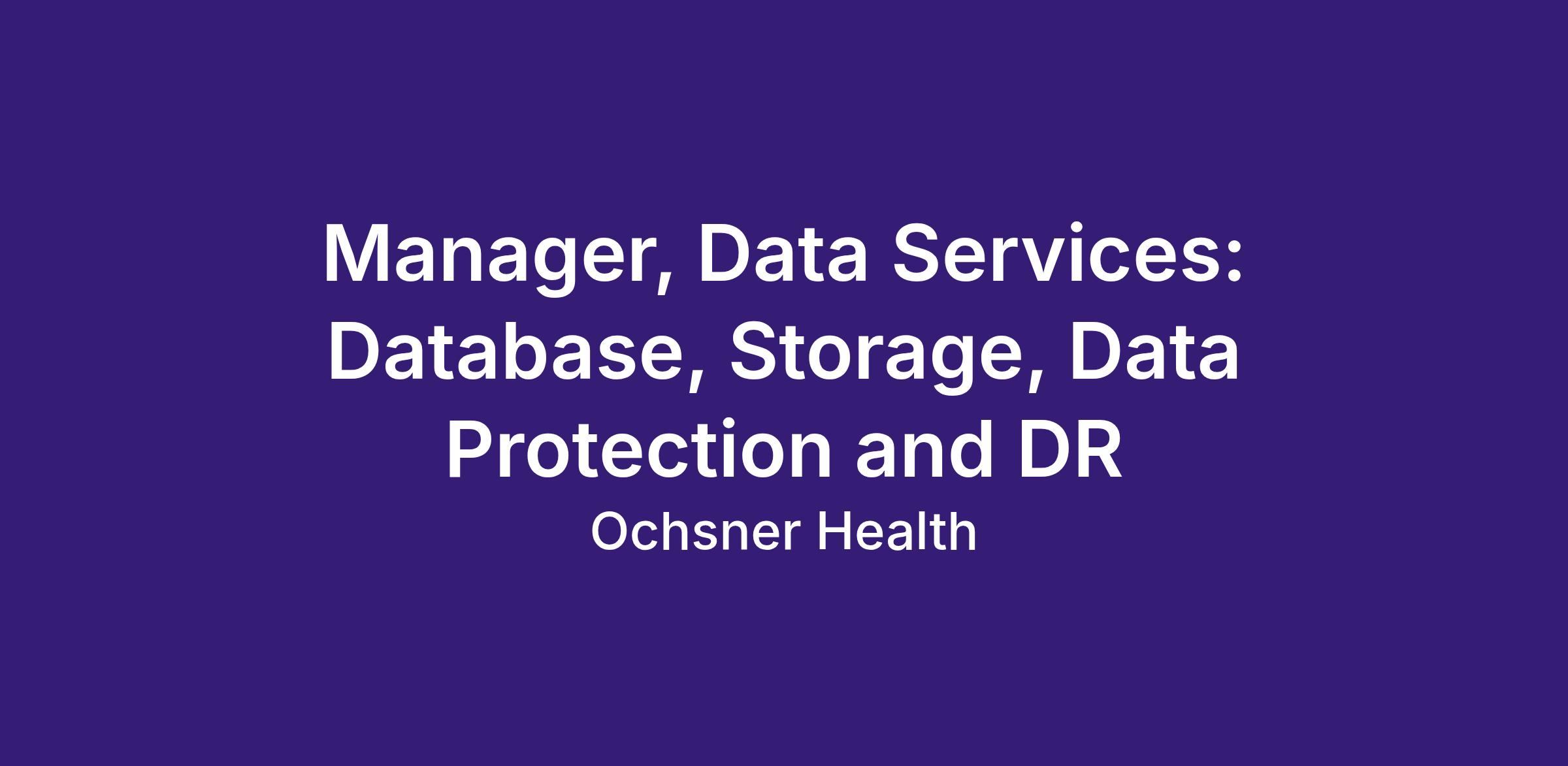 The Manager of Storage, Database, Data Protection & DR is responsible for leading the strategy, design, implementation, and ongoing operations of the organization’s data infrastructure. This role ensures the availability, performance, security, and recoverability of enterprise data platforms, including storage systems, databases, backup, disaster recovery, and data protection technologies.To perform this job successfully, an individual must be able to perform each essential duty satisfactorily. The requirements listed below are representative of the knowledge, skill, and/or ability required. Reasonable accommodations may be made to enable qualified individuals with disabilities to perform the essential duties.