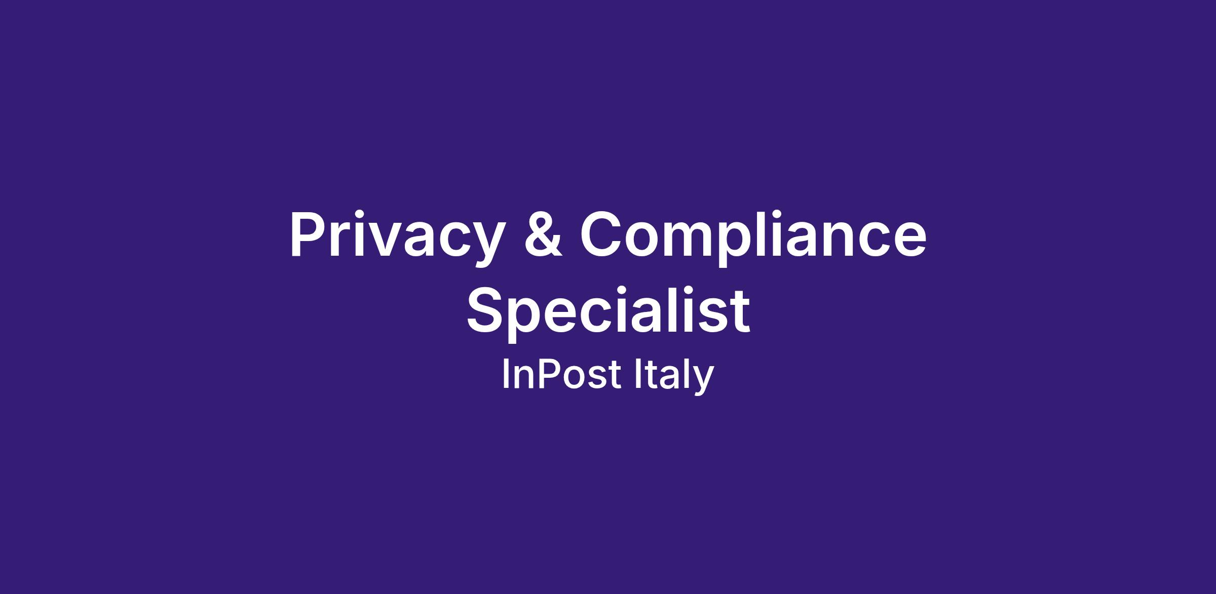 Invitiamo a prendere visione della nostra liberatoria privacy sul nostro sito www.inpost.it, alla sezione Privacy Policy - Colloqui e selezione.