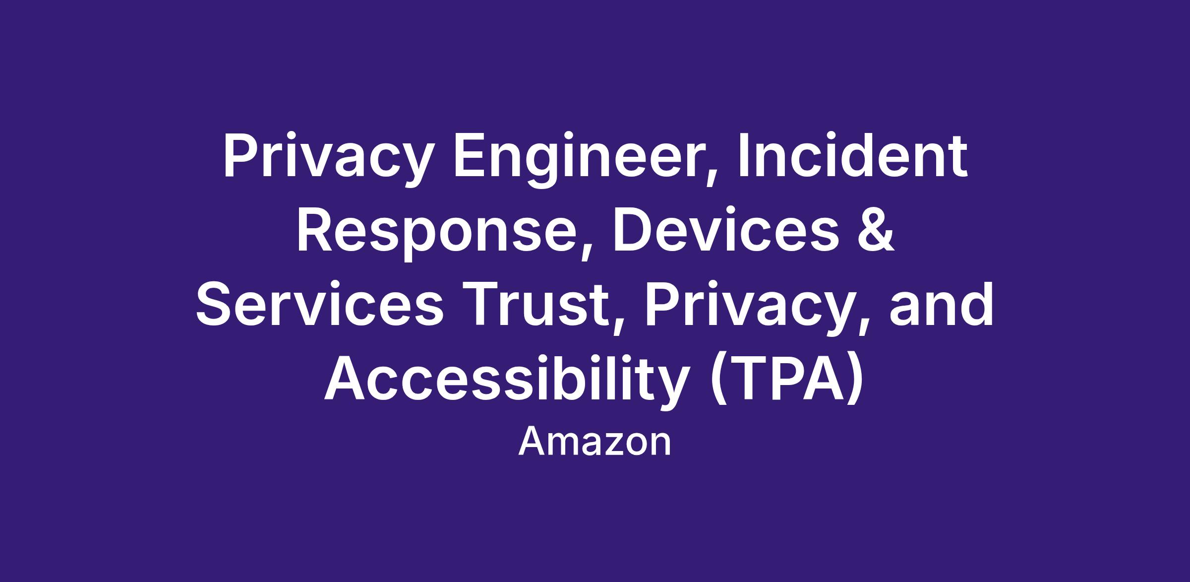 Privacy Engineer, Incident Response, Devices & Services Trust, Privacy, and Accessibility (TPA)