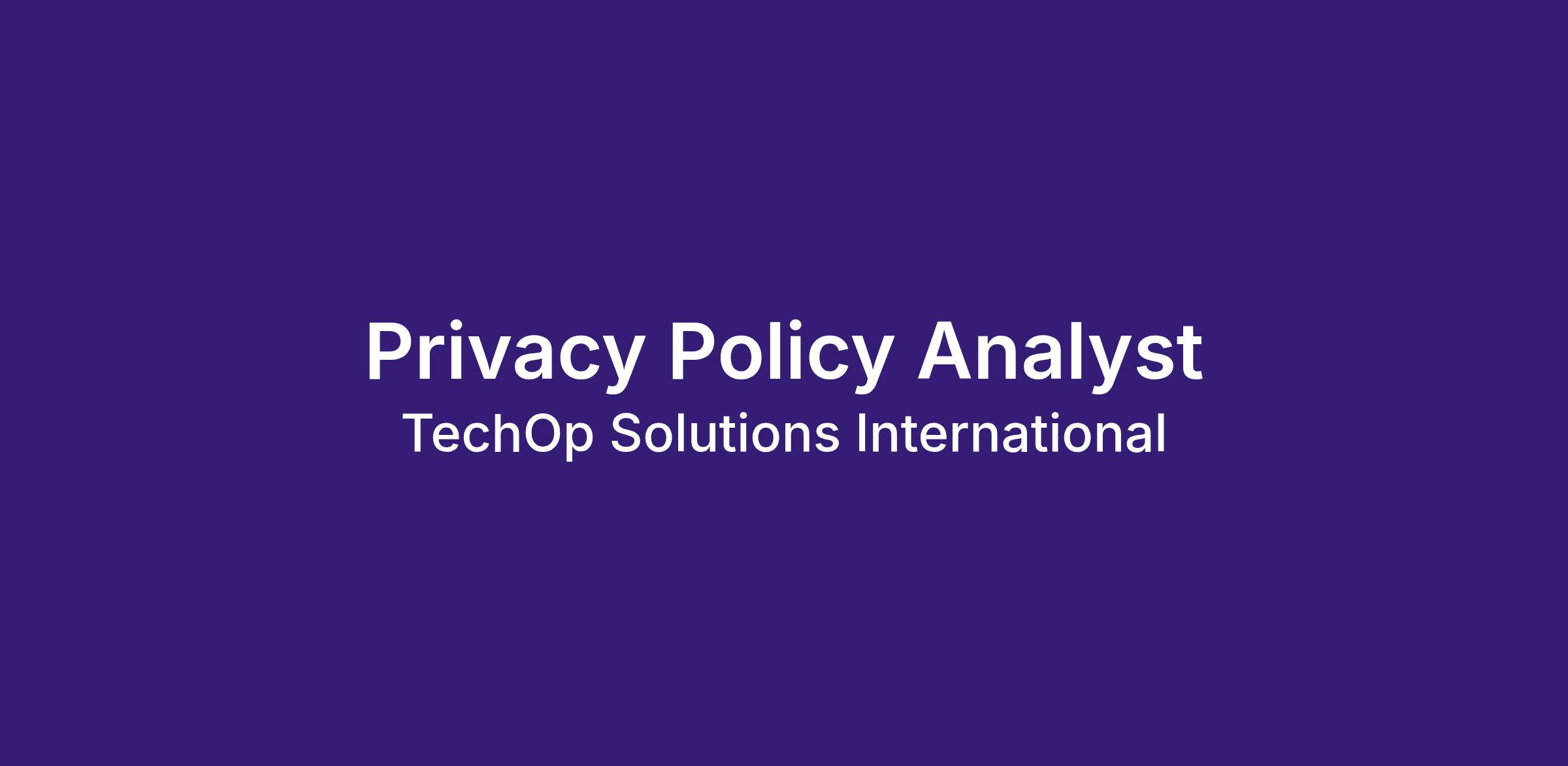 TechOp Solutions International is looking for a skilled and motivated Privacy Policy Analyst to join our team and support of our client. In this role, the Privacy Policy Analyst is responsible for ensuring the Commission’s compliance with the Privacy Act of 1974, the E-Government Act of 2002, and OMB/NIST mandates. This role requires a blend of policy drafting, IT risk assessment, and incident management.