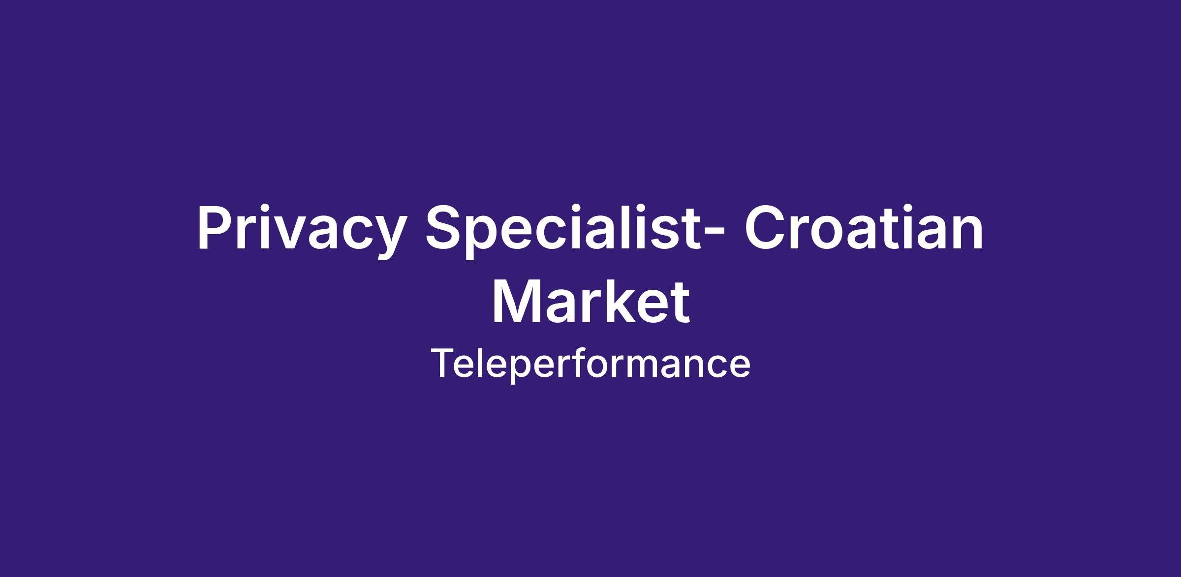 Job Title: Privacy Data Specialist (Croation Market)