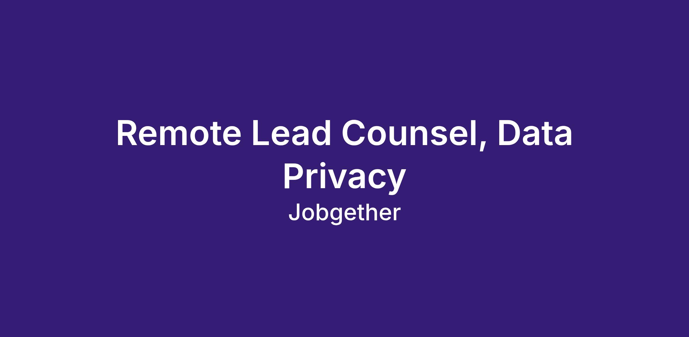 Remote Lead Counsel, Data Privacy