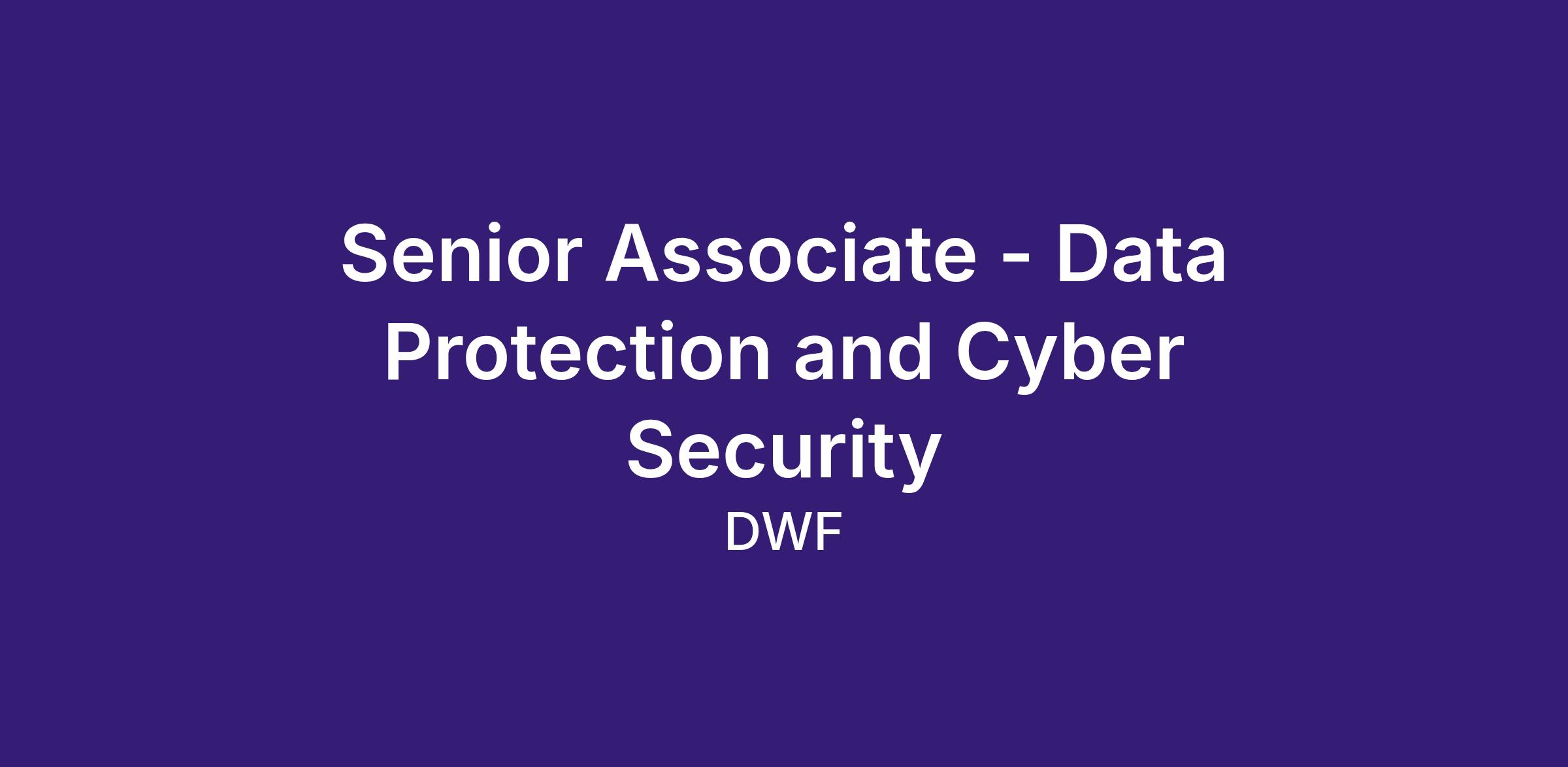 We are recruiting for a Senior Associate to join our Data Protection and Cyber Security team at DWF, an award‑winning global legal business.