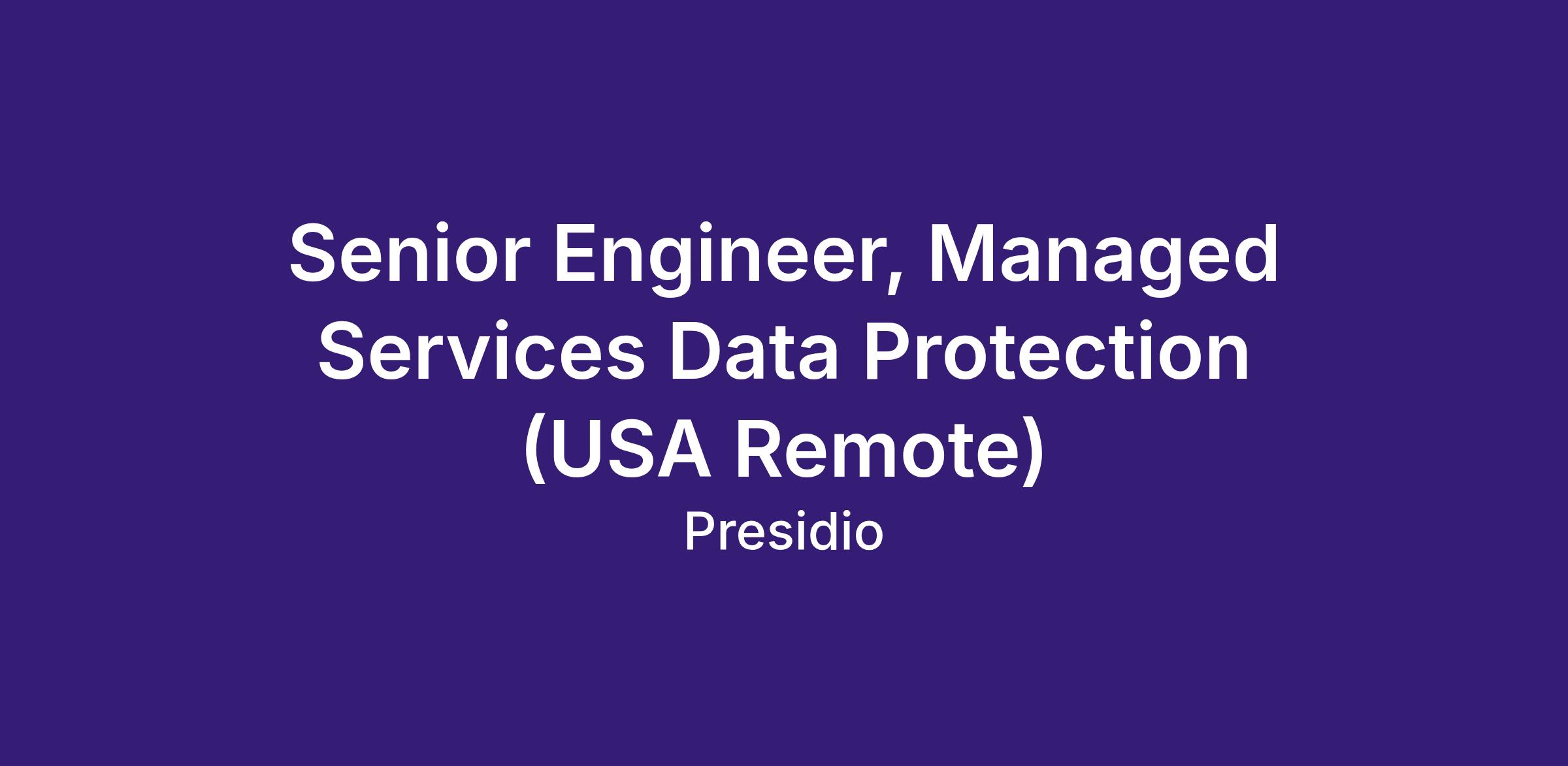 Presidio Sr. Engineer, Managed Services Data Protection will lead the onboarding, implementation, and management of enterprise data protection solutions across a diverse client base. This role is responsible for ensuring backup, recovery, ransomware protection, and disaster recovery solutions meet customer business and security requirements in a managed services environment.