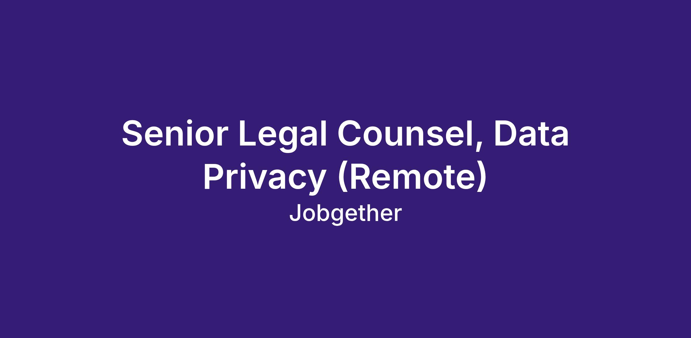 Senior Legal Counsel, Data Privacy (Remote)