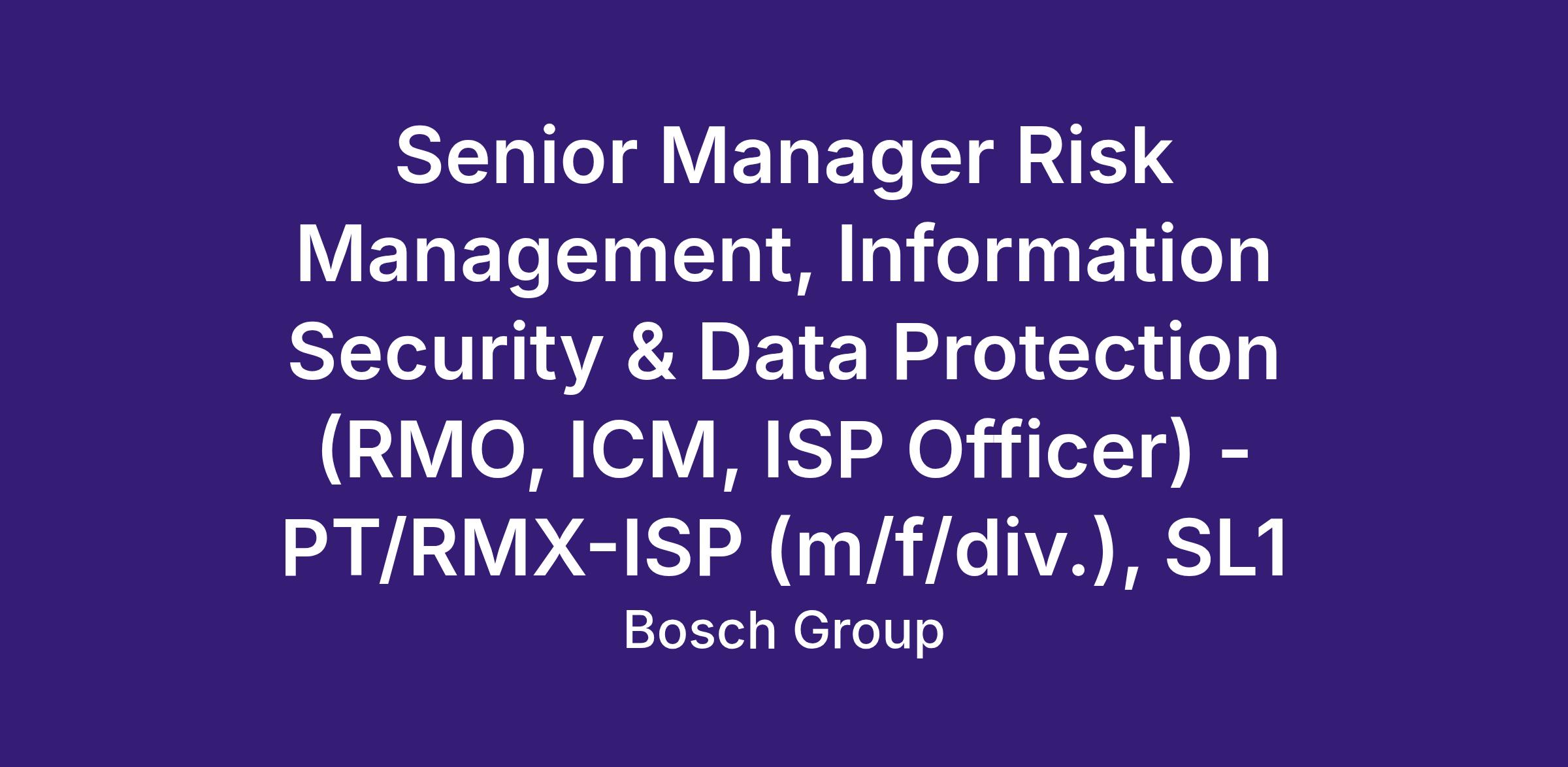 Senior Manager Risk Management, Information Security & Data Protection (RMO, ICM, ISP Officer) - PT/RMX-ISP (m/f/div.), SL1