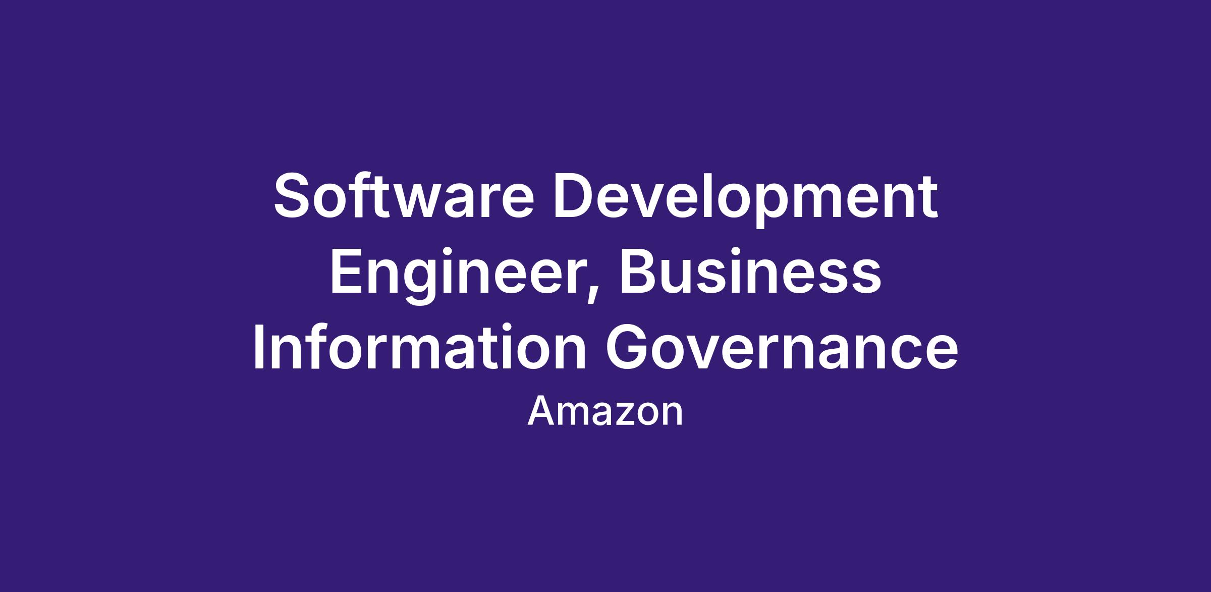 Software Development Engineer, Business Information Governance