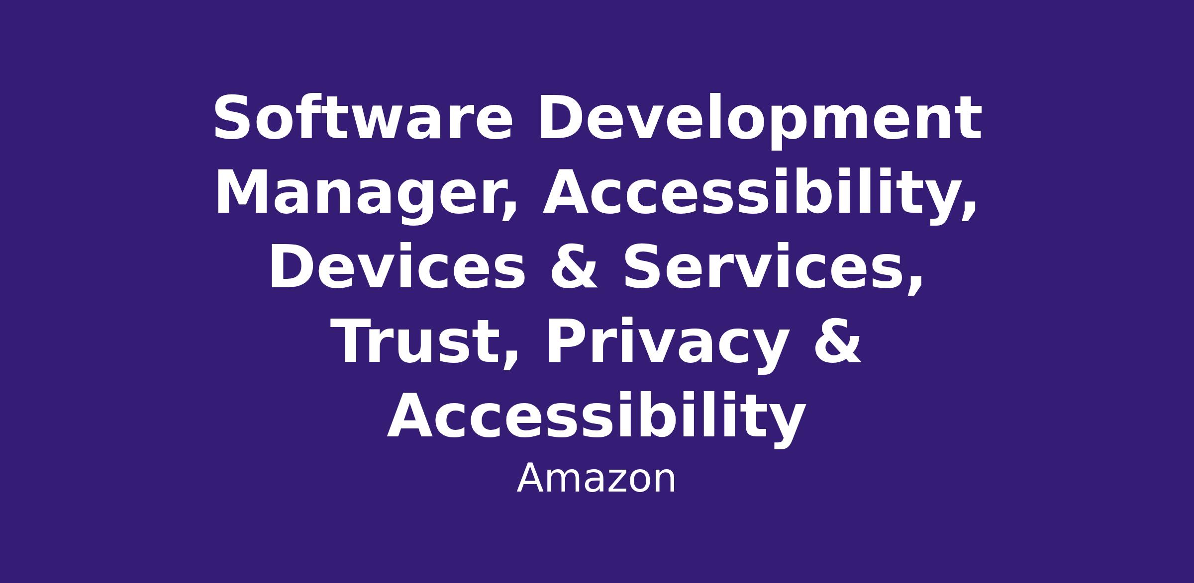 Software Development Manager, Accessibility, Devices & Services, Trust, Privacy & Accessibility