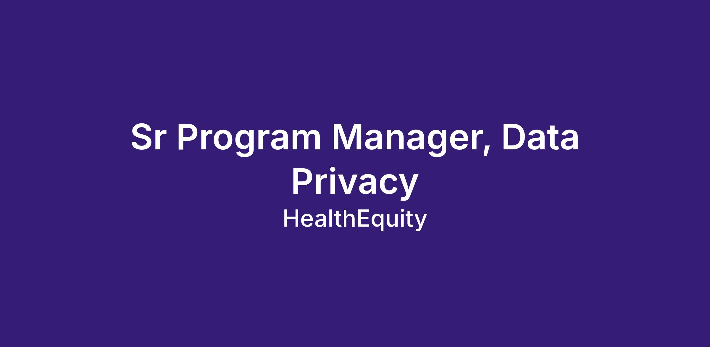 Sr Program Manager, Data Privacy