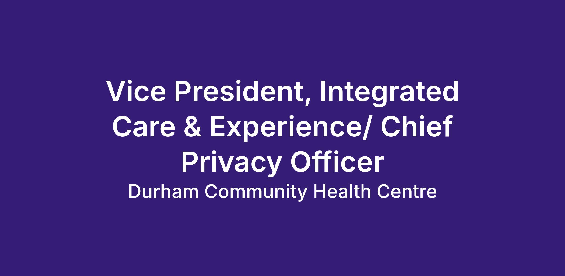 Position Title: Vice President, Integrated Care & Experience/ Chief Privacy Officer