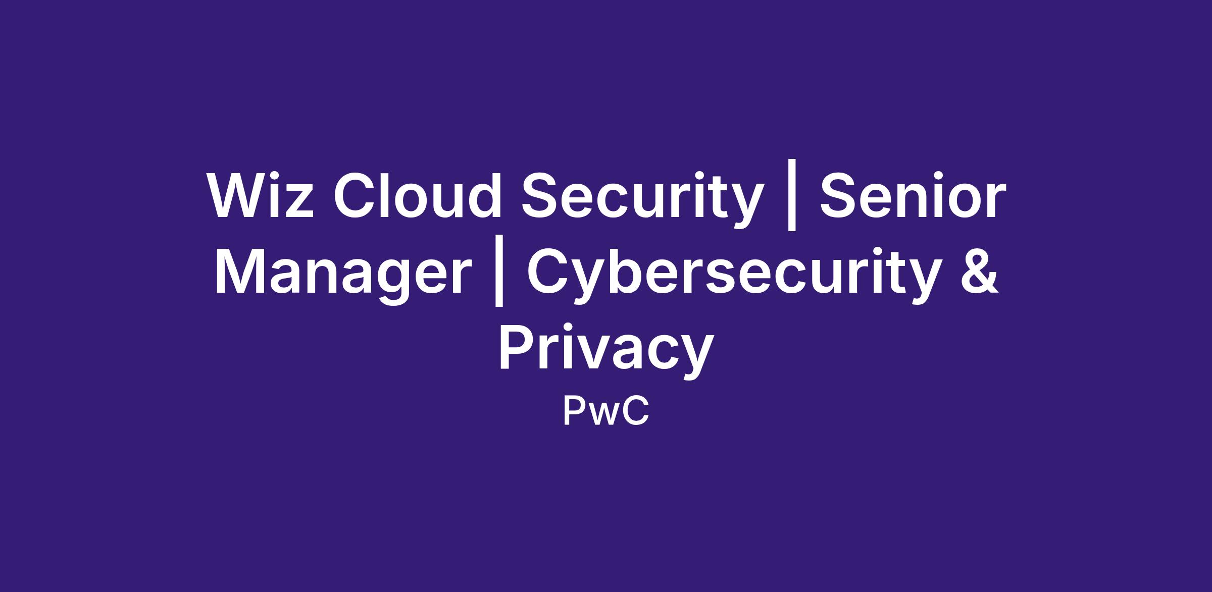 Wiz Cloud Security | Senior Manager | Cybersecurity & Privacy